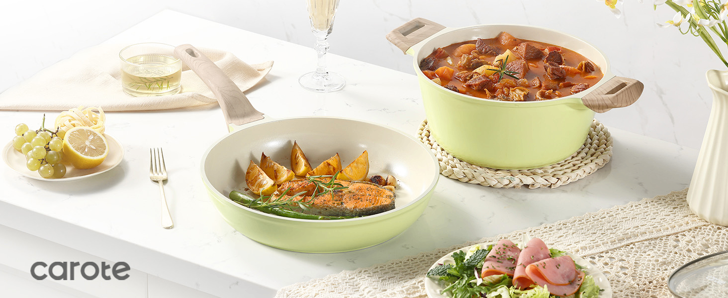 OVEN COMPATIBLE: For extended versatility. this collection is oven safe up to 390°F and suitable for all stovetops. except induction.