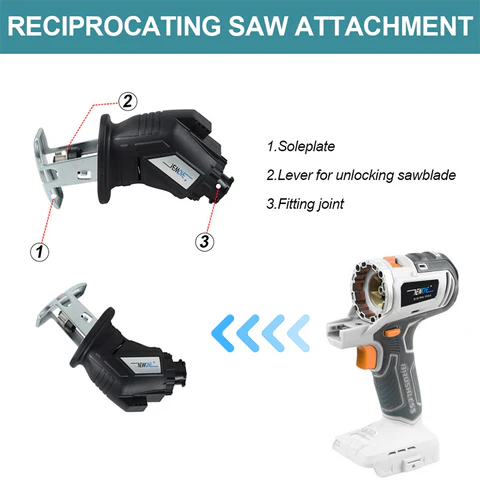 This product is widely used for screwing and drilling. By connecting different attachments, it can perform a variety of tasks such as cutting, sanding, and oscillating. For example, the oscillating tool attachment can cut materials such as drywall, metal, and wood, while the reciprocating saw attachment makes it easy to change blades and can cut materials such as wood and metal. The sanding attachment is ideal for detailed sanding of furniture such as chairs, coffee tables, and chest of drawers.